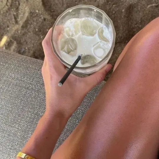 Olvídate de lociones engorrosas y rutinas complicadas. Simplemente mézclalo con agua, zumo o café helado, bebe un sorbo y déjate iluminar sin esfuerzo.